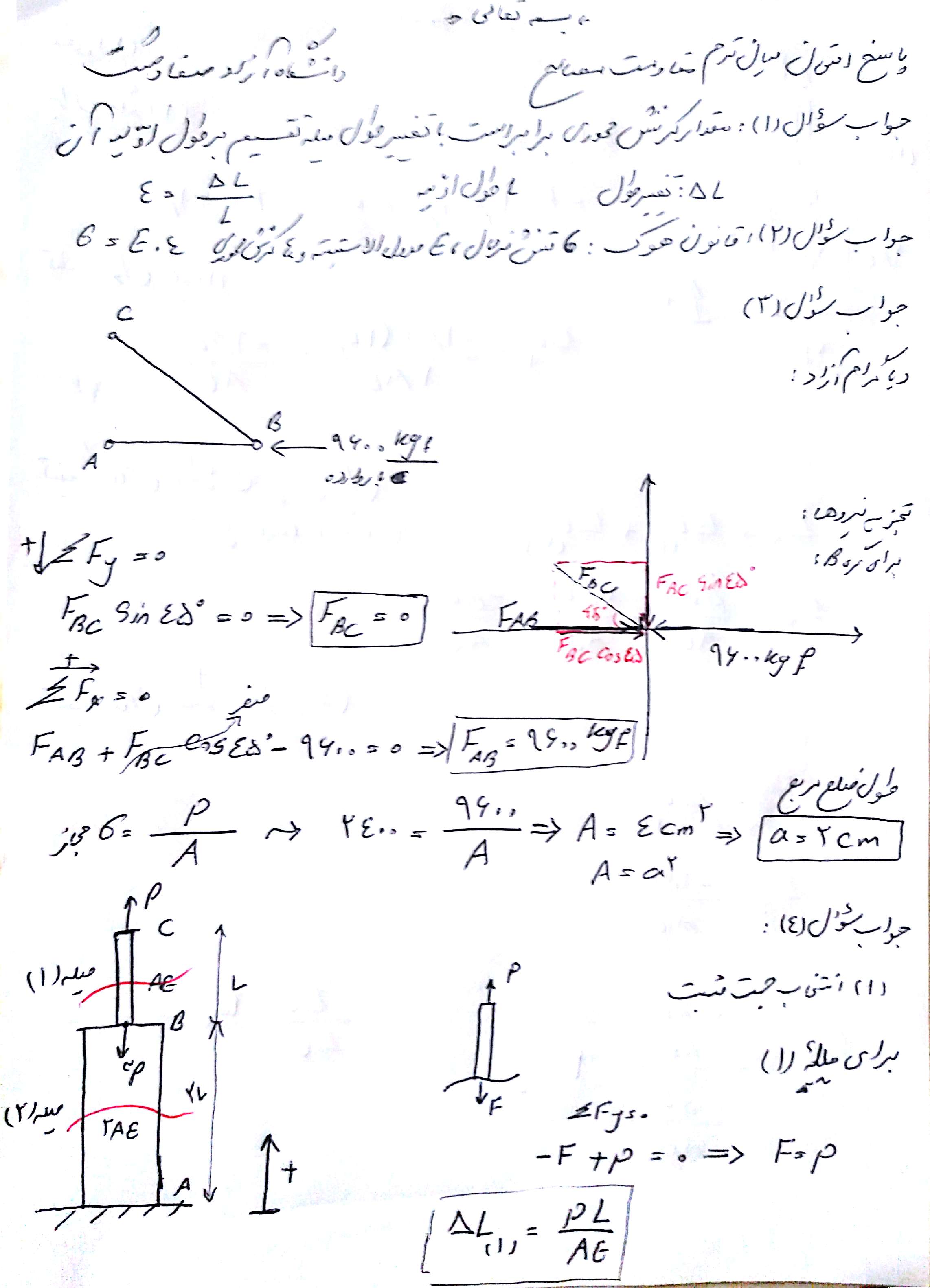 جواب امتحان میانترم مقاومت مصالح و نمرات میان ترم امروز اعلام میگردد.